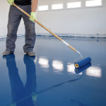 Epoxy flooring services for garages and basements, including solid colors, flake systems, and decorative marble-style finishes.